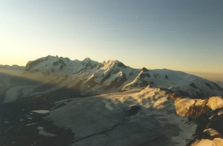 Morgensonne (Blick Richtung Monte Rosa, vorn Kl. Matter- und Breithorn).