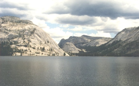 Tenaya Lake, li. Stately Pleasure Dome mit markanter Rippe re.: Great White Book 5.6