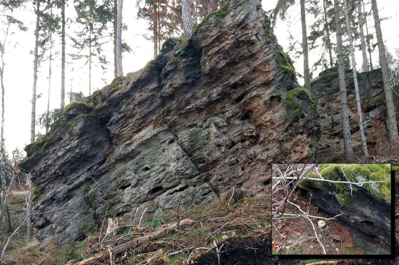 Felsblock nördl. der Eibischsteine (Waldgebiet zwischen Berggießhübel und Bahra)