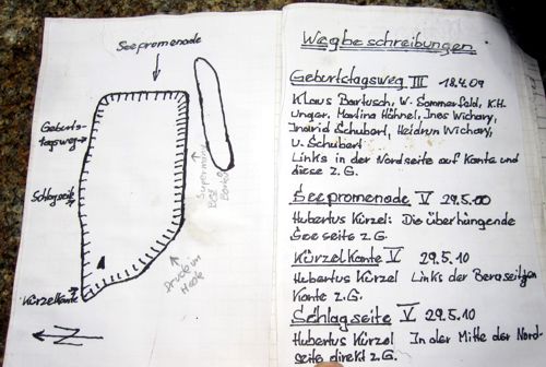 Kleines selbständiges Gipfelchen (mit Gipfelbuch und Abseilöse) am Berzdorfer See bei Görlitz,