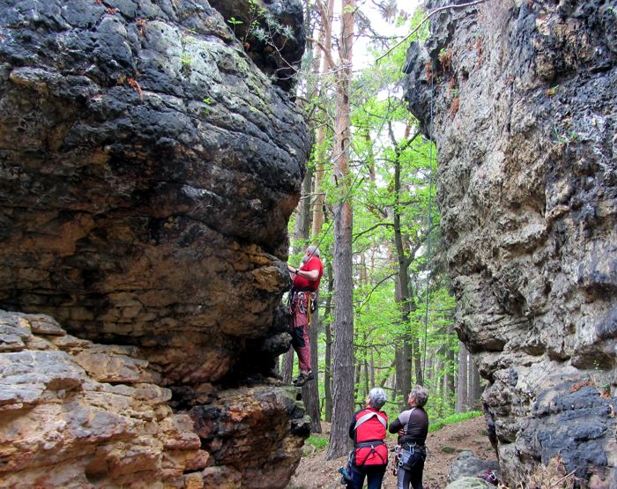 Selbständiger Turm an den Zehistaer Wänden direkt unter dem Aussichtspunkt der Felsenbrücken (mit GB und AÖ).