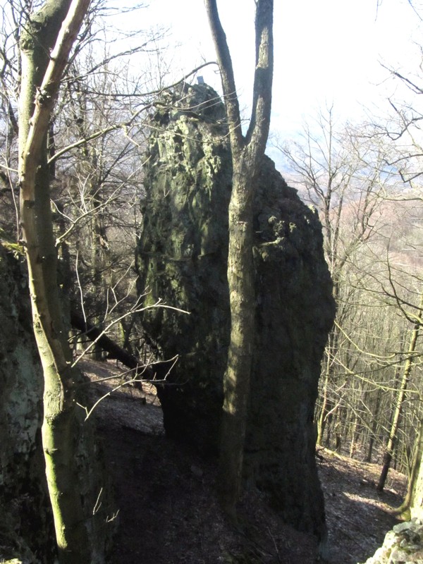 Selbständiges Gipfelchen mit interessanter Phonolithstruktur nahe des großen Fernsehturms über Ústí und Děčin auf dem Buková hora (Zinkenstein) in Tschechien.