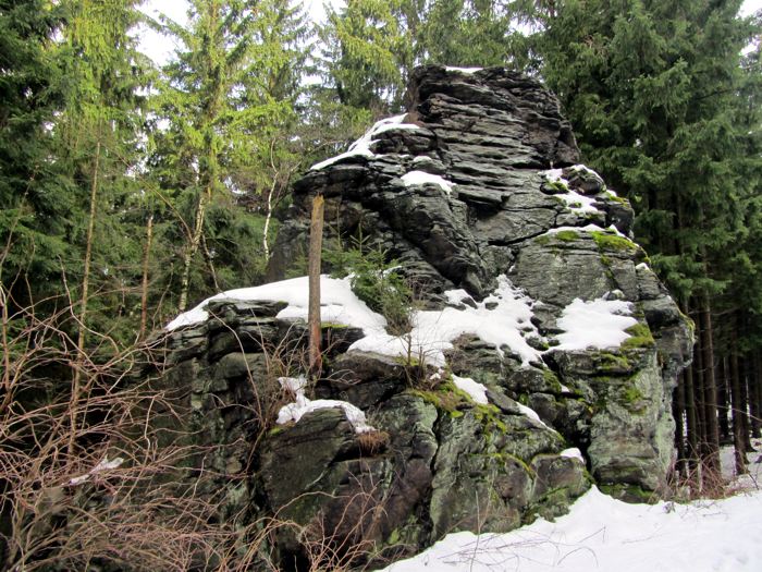 Kleiner selbständiger Turm in der Hartmannsdorfer Schweiz (am Steinberg im Tal der Wilden Weißeritz bei Reichstädt), mit GB und AÖ.