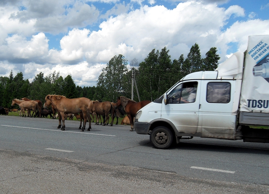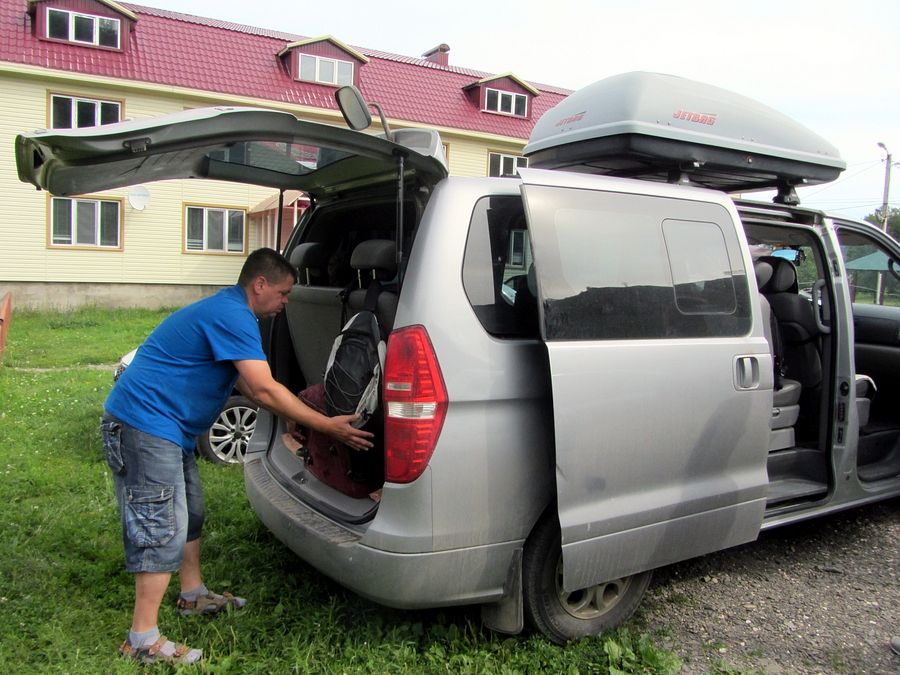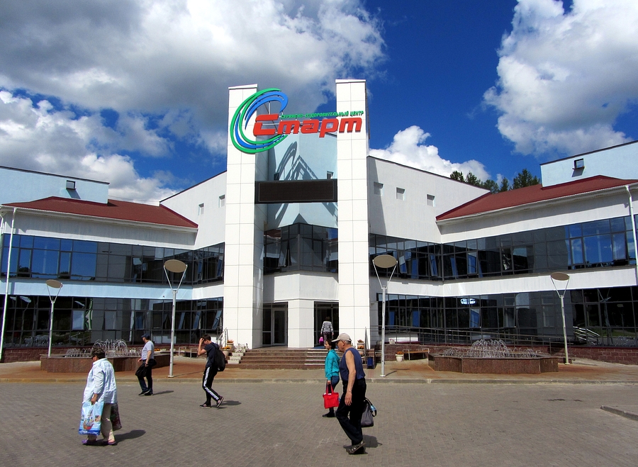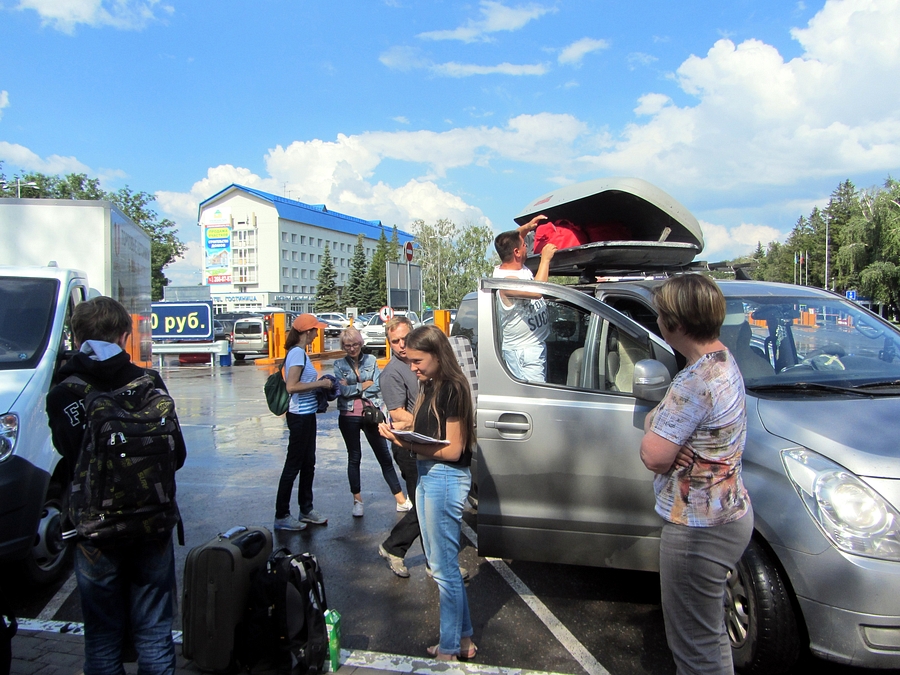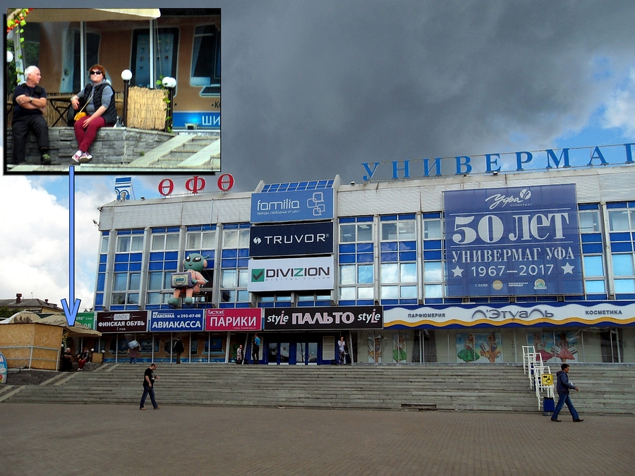 Treffen der Tour-Teilnehmer am Kaufhaus "Ufa". |