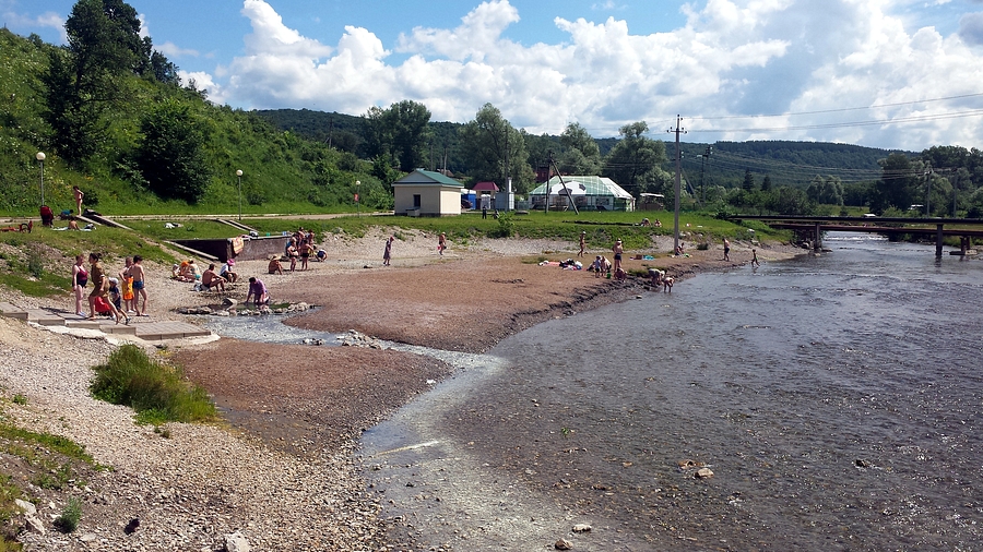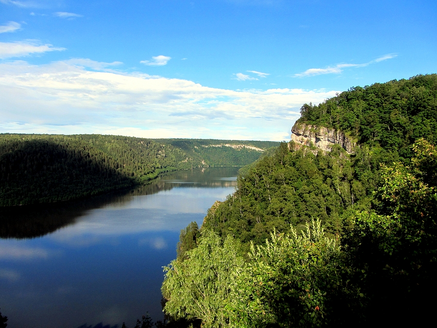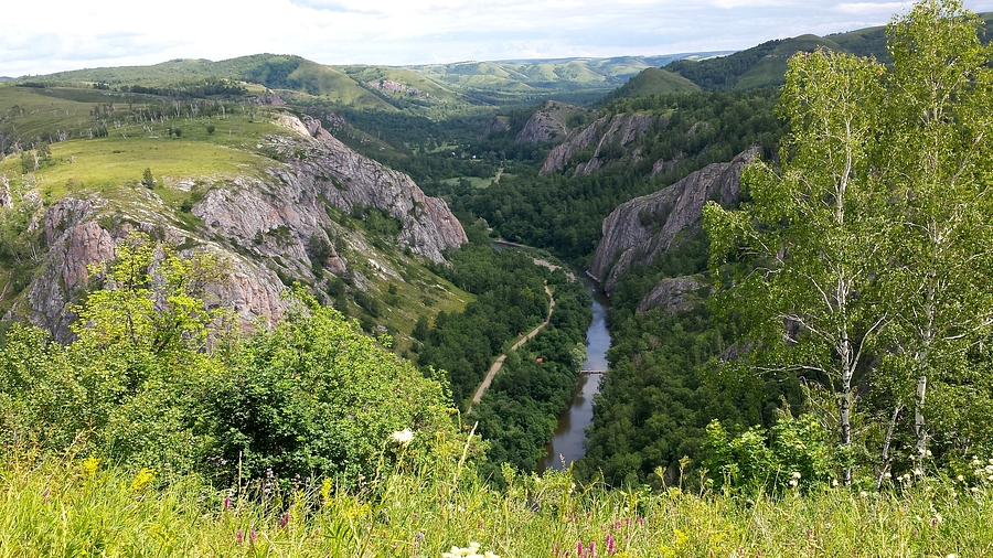 Fluss Belaja, im Hintergrund der Berg Jurak-Tau. |