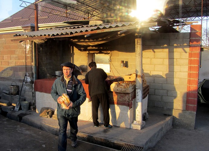 Organisationschef Slawa beim Brotkauf in Koitasch |
