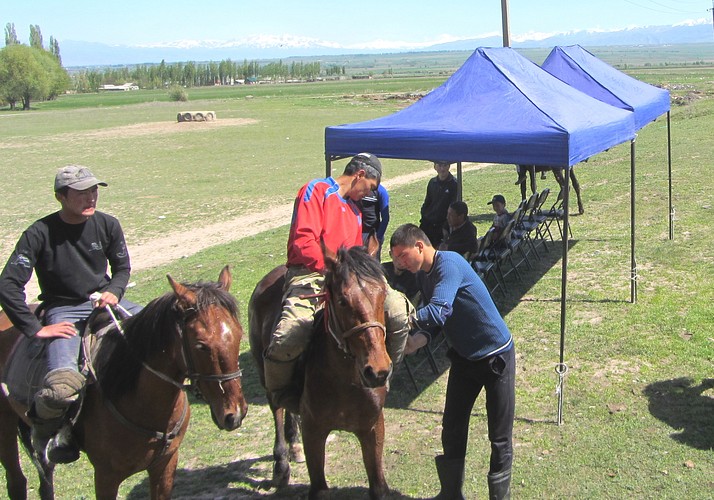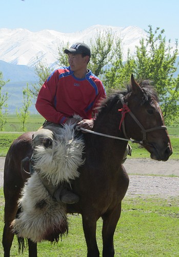 Kok-Boru = National-Sport zu Pferd. Als Spielball dient ein Ziegenkadaver. |
