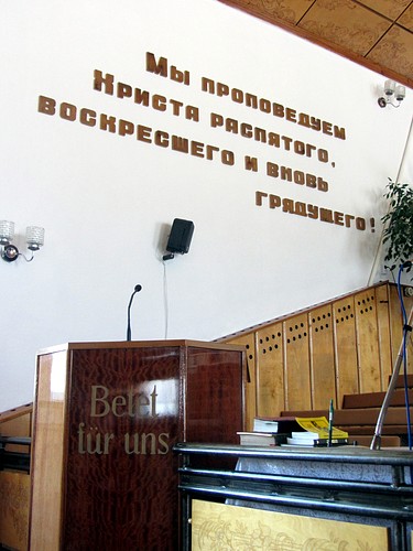 Gemeindehaus/Kirche in Rot-Front von außen ... |