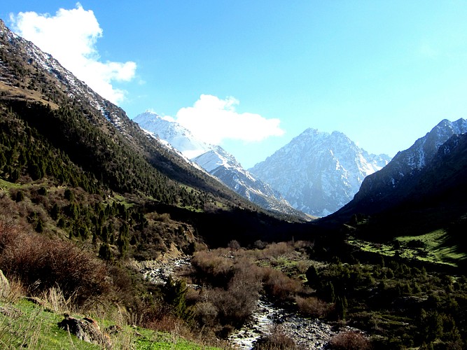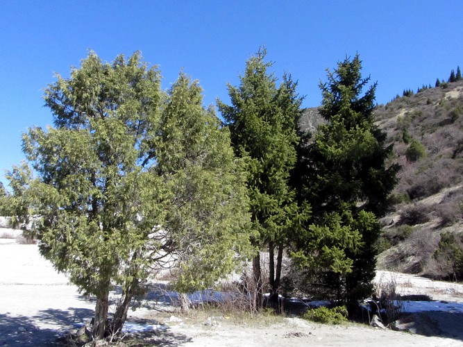 Artsche (Wacholder) und Tienschan-Fichte, das Markenzeichen des Tales. |