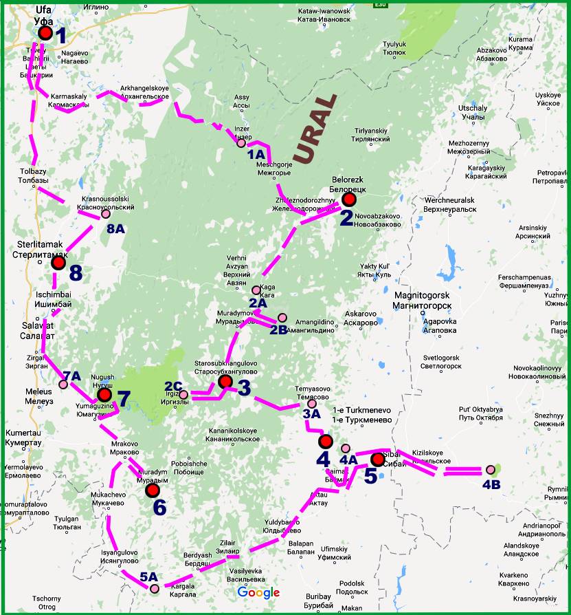 | 2c | Naturschutzgebiet Schulgan-Tasch | 7 | Nugusch - Hotel Baschkirisches Dorf | ||