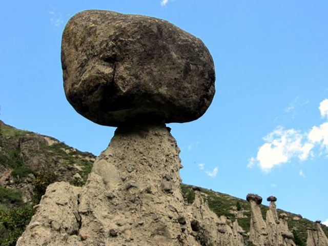 Auch die Erdpyramiden am Tschulyschman-Nebenfluss Karasu verfehlten nicht ihre Wirkung auf uns staunende Besucher.