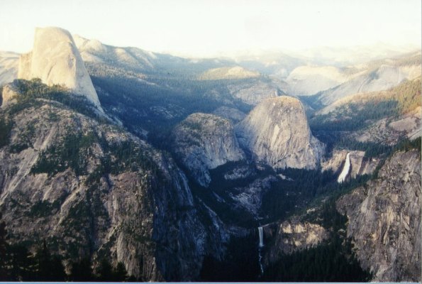 Abend am Glacier Point mit Blick zu Half Dome, Liberty Cap, Nevada - und Vernal Fall