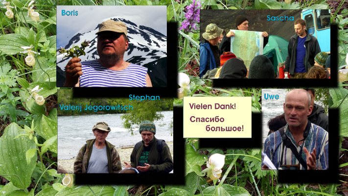 Entscheidenden Anteil am Erfolg unserer Expedition hatten die sich um uns sorgenden Wissenschaftler Boris (Botaniker), Walerij Jegorowitsch (Geologe), Sascha (Vulkanologe) und Uwe (Ornithologe).