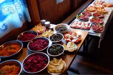 | Die Küchenmannschaft sorgte mit unermüdlichem Einsatz unter ziemlich erschwerten Bedingungen für unser leibliches Wohl. Beim legendären Abschiedsessen verschlug es uns glatt die Sprache angesichts der vielen liebevoll zubereiteten Leckerbissen! |
