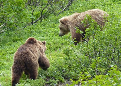 | Dass wir uns in Bärenland befanden, war allgegenwärtig zu bemerken - so reichlich hinterließen sie ihre Spuren. Wirklich zu sehen bekam man sie seltener, zumal ja der Aufstieg der Lachse in den Flüssen eben erst beginnen sollte. |