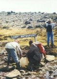 Wir stellen einmal mehr fest, daß keiner vor dem Aufstieg weiß, ob und wie stark ihn die Höhenkrankheit packen wird. Am Gipfel treffen wir eine nach ihren Worten ziemlich unsportliche Australierin, die ihrem Mann zuliebe - einem richtigen Crack - mit auf diese Tour gegangen war. Er aber mußte im Gegensatz zu ihr aufgeben, und sie war total happy. Wir hatten sicher unser Möglichstes im Rahmen dieser Tour für das Gelingen getan mit dem aktiven Gestalten der Umstände ("Step high - sleep down"-Methode, Aufbruchzeit, Tempo). Ich für meine Person hätte ein vorzeitiges Umkehren nach all den Vorbereitungen als schmerzliche Niederlage empfunden. Direkt vor der Reise hatte ich mich eine Woche am Gran Paradiso akklimatisiert, hatte dort in ca. 3000 m Höhe gebiwakt und dabei neben dem Gran Paradiso (4081 m) noch verschiedene andere Touren über 3000 m unternommen. (Bericht darüber s. "Touren"). Ob das der Grund war, weiß ich nicht genau, auf jeden Fall hatte ich am Kibo keinerlei Höhenprobleme.